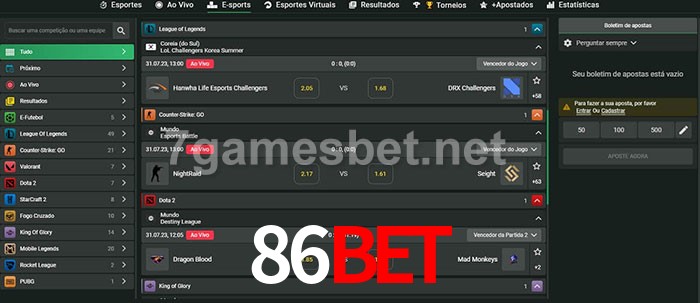O 86bet oferece uma grande seleção de opções de apostas em e-sports com probabilidades competitivas